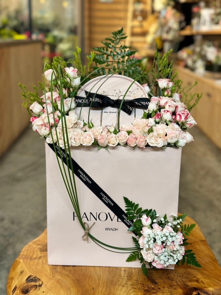 شوكليت هنوفرين مع ازهار البيبي روز وستلقراس مزين باكسسوارات هولنديه